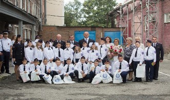 1 сентября 2017 года на базе полка ДПС ГИБДД УМВД России по городу Новосибирску прошла торжественная линейка, посвященная открытию специализированных классов юных инспекторов дорожного движения в школах №№56 и 76. На этой линейке нас приняли в юидовцы.Участие в торжественном мероприятии приняли начальник УГИБДД ГУМВД России по НСО С.В. Штельмах, заместитель начальника департамента образования Е. Ю. Кащенко, депутат Государственной Думы, Герой Российской Федерации, трехкратный победитель Олимпийских игр А. А. Карелин, председатель правления НРОО "Форпост" И.В. Морозова. Перед лицом почетных гостей мы поклялись изучать Правила дорожного движения и быть примером в их соблюдении, вести разъяснительную работу по пропаганде ПДД и быть верными помощниками сотрудников Госавтоинспекции.